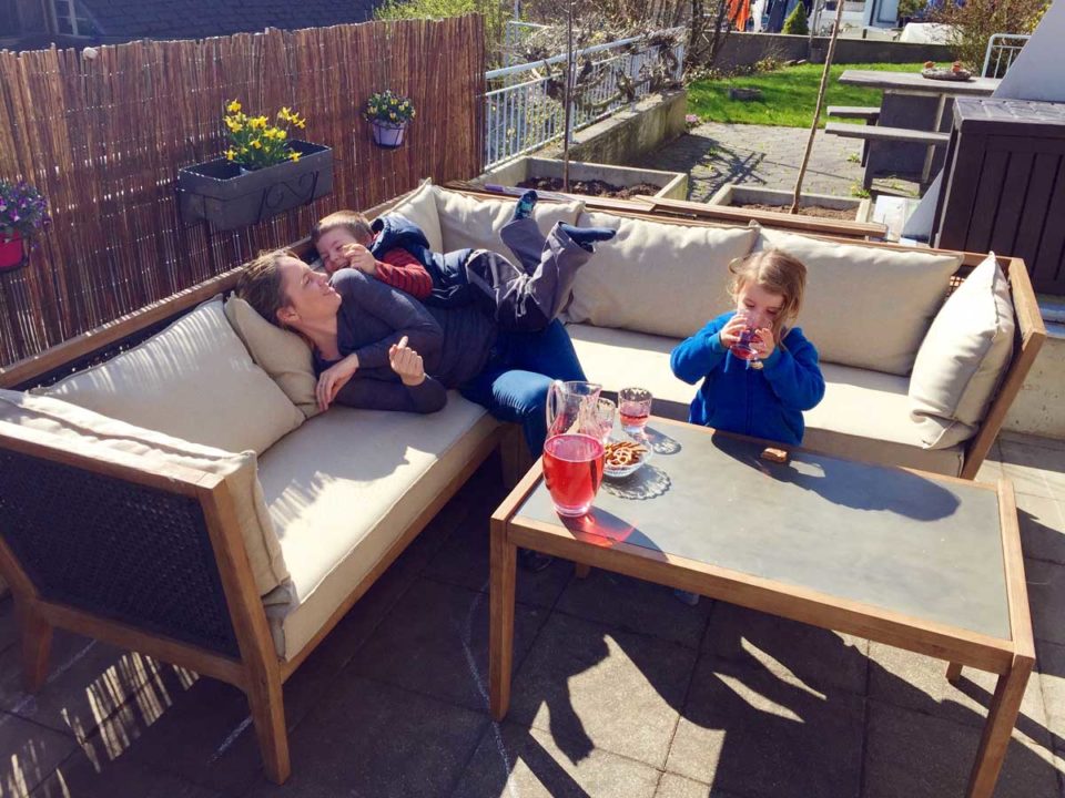 Während sich der Fachmann um die Entsorgung des Materials kümmert, geniesst Familie Zesiger bereits den neu gewonnen Platz auf ihrer Terrasse.